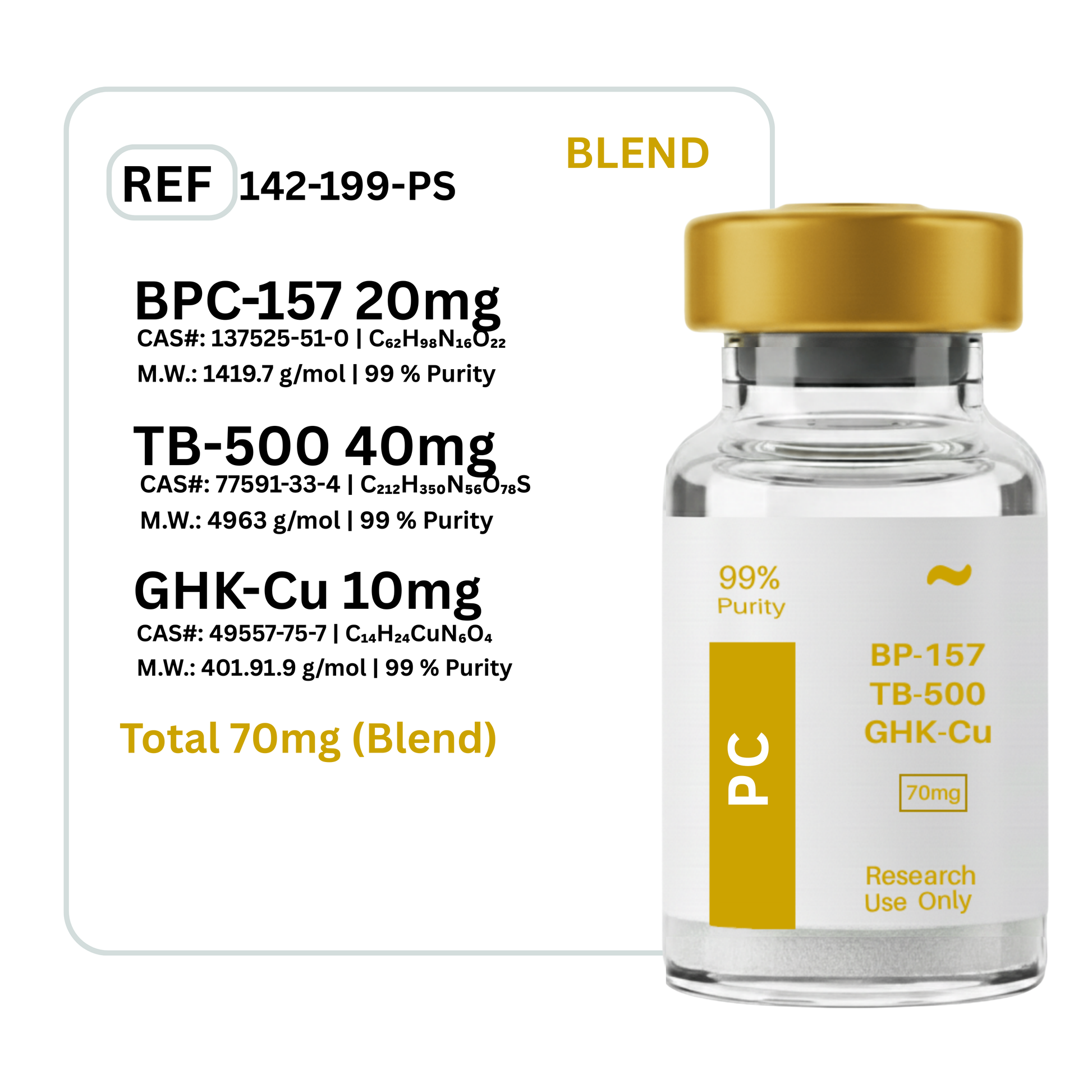 This batch of BPC-157 + TB-500 + GHK-Cu Peptide Blend has been third party lab tested and verified for quality.